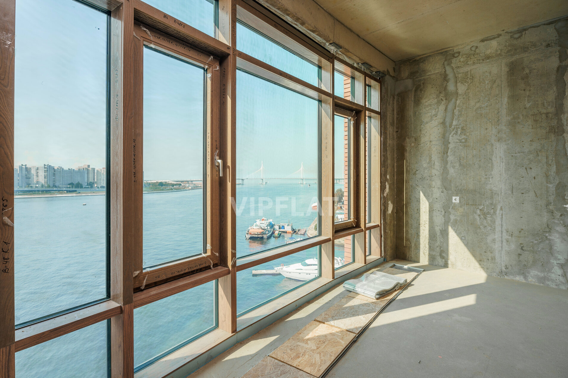 Вода, кругом вода! Огромные панорамные окна и потрясающие виды на Неву и Финский залив. Кухня-гостиная 56 метров, 4 спальни, видовые балконы. Семейный дом в окружении воды и зелени.Подземный паркинг