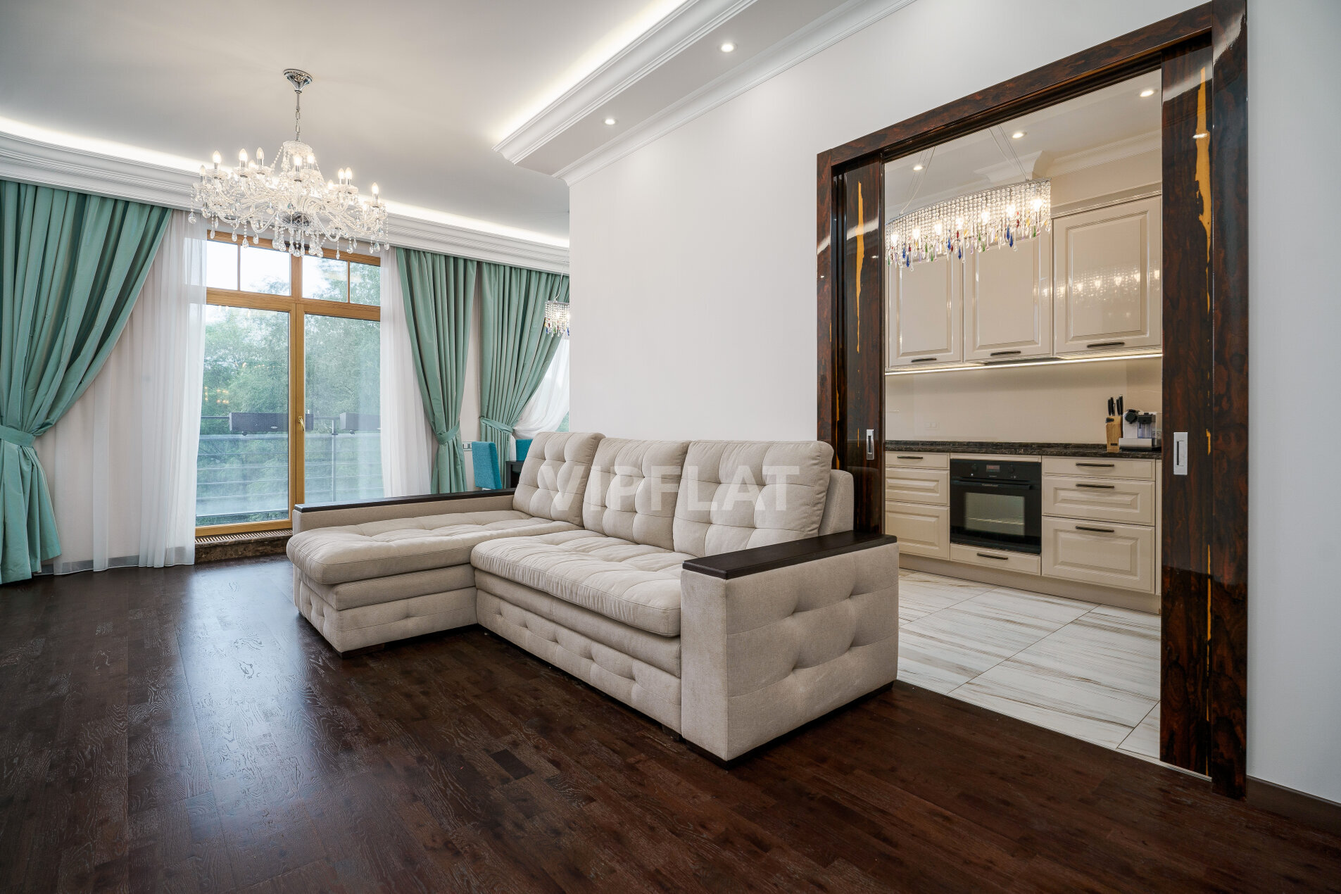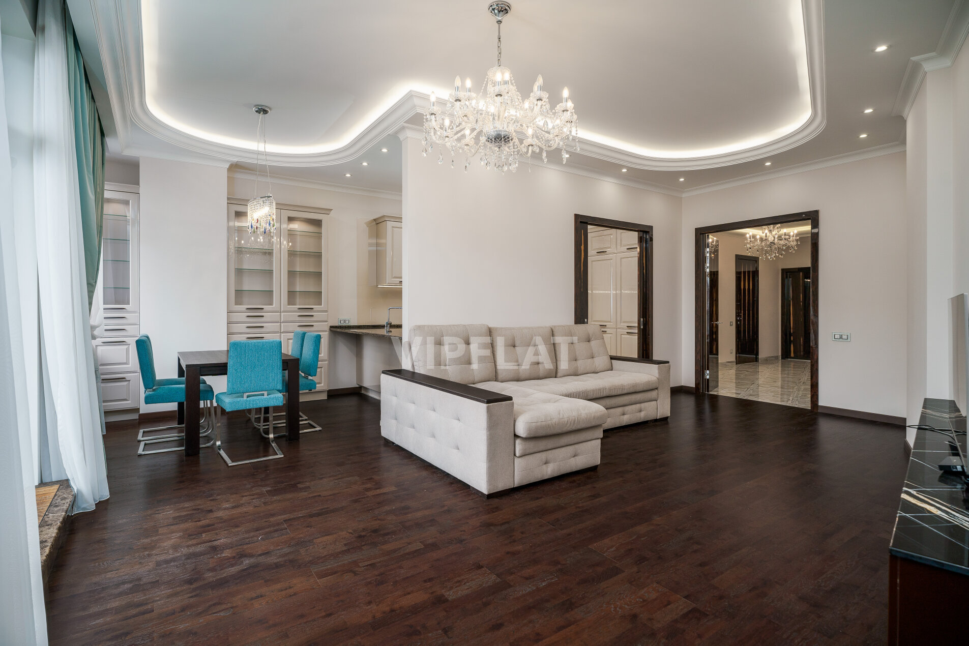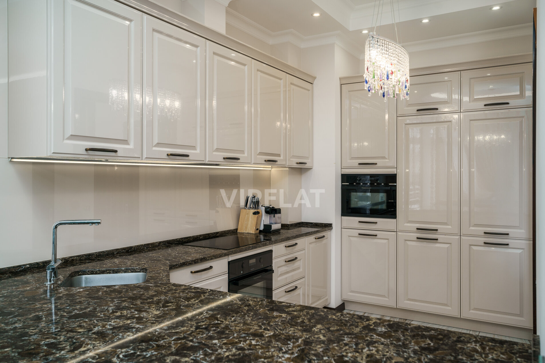 Большая входная зона прихожей с гостевым санузлом визуально продолжает пространство кухни и гостиной. Кухня немецкой фабрикой Rotpunkt Küchen оснащена техникой Kuppersbusch и Liebherr. Большие окна в пол и потолки высотой 3,3 м наполняют комнаты светом, а два балкона делают планировку ещё более функциональной.