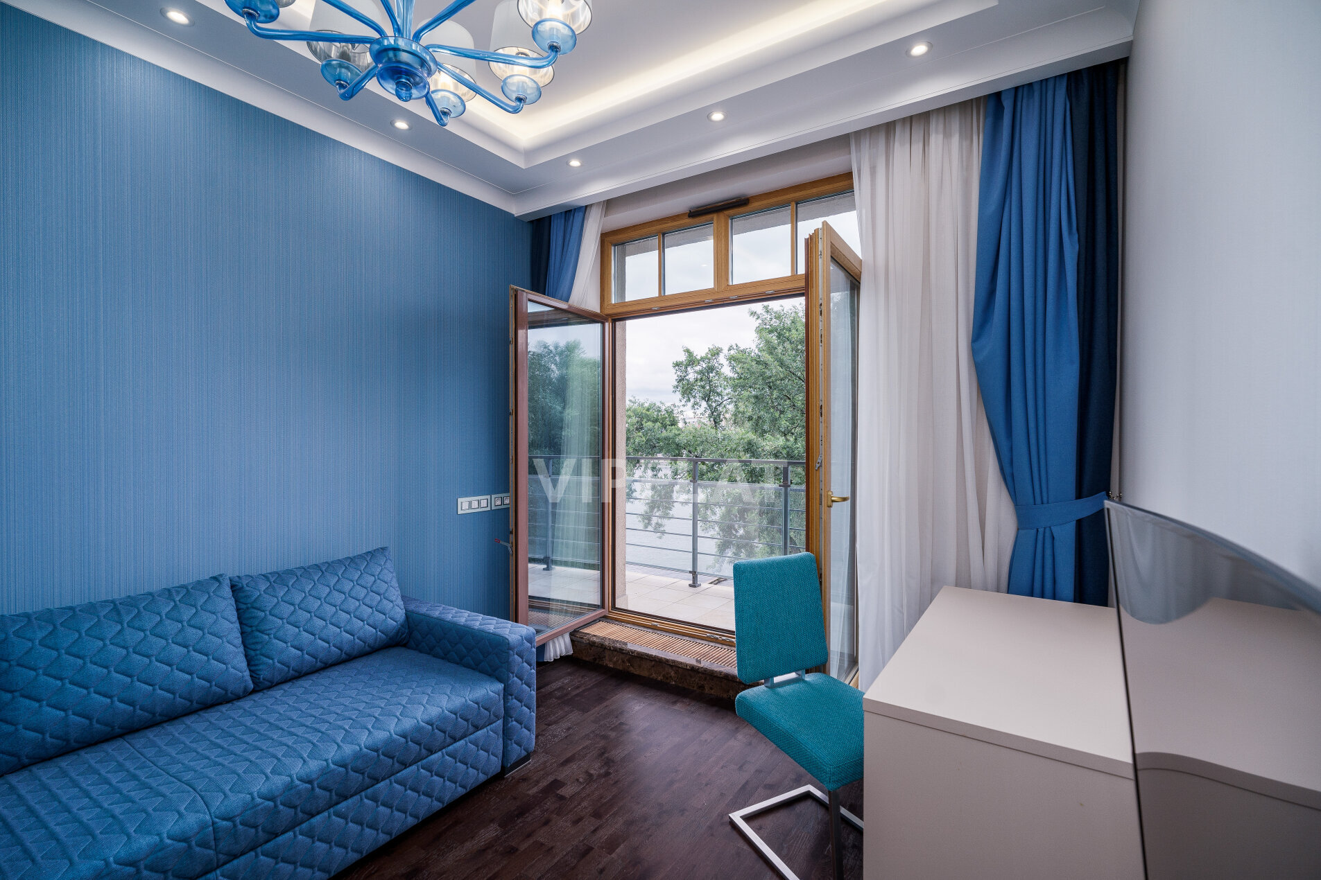 Приватная часть квартиры состоит из двух спален, ванной комнаты площадью 12 м² с мозаичным панно фабрики Sicis, гардеробной и кладовой. Ванные комнаты оборудованы сантехникой и аксессуарами премиальных брендов Gessi и Laufen. Все дверные проёмы увеличены по высоте, двери выполнены из натурального шпона, перегородки кирпичные, что значительно улучшает звукоизоляцию. В квартире очень тихо.