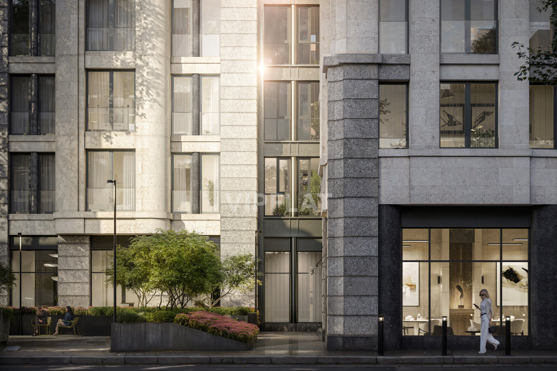 Уютный курдонёр со стороны улицы Чапыгина приглашает замедлиться и насладиться приятной суетой Петроградской стороны. Приватный двор по типу испанских патио поднят на стилобат до уровня второго этажа и спрятан от глаз прохожих. Попасть сюда смогут только жители по электронному ключу через калитку или через парадную входную группу. Весь периметр и внутренняя инфраструктура дома защищены IP-системой контроля доступа и находятся под постоянным видеонаблюдением. В патио есть как уединённые беседки под навесом, так и места для игр, общения и работы на свежем воздухе, а на всей территории сада — свободный Wi-Fi.