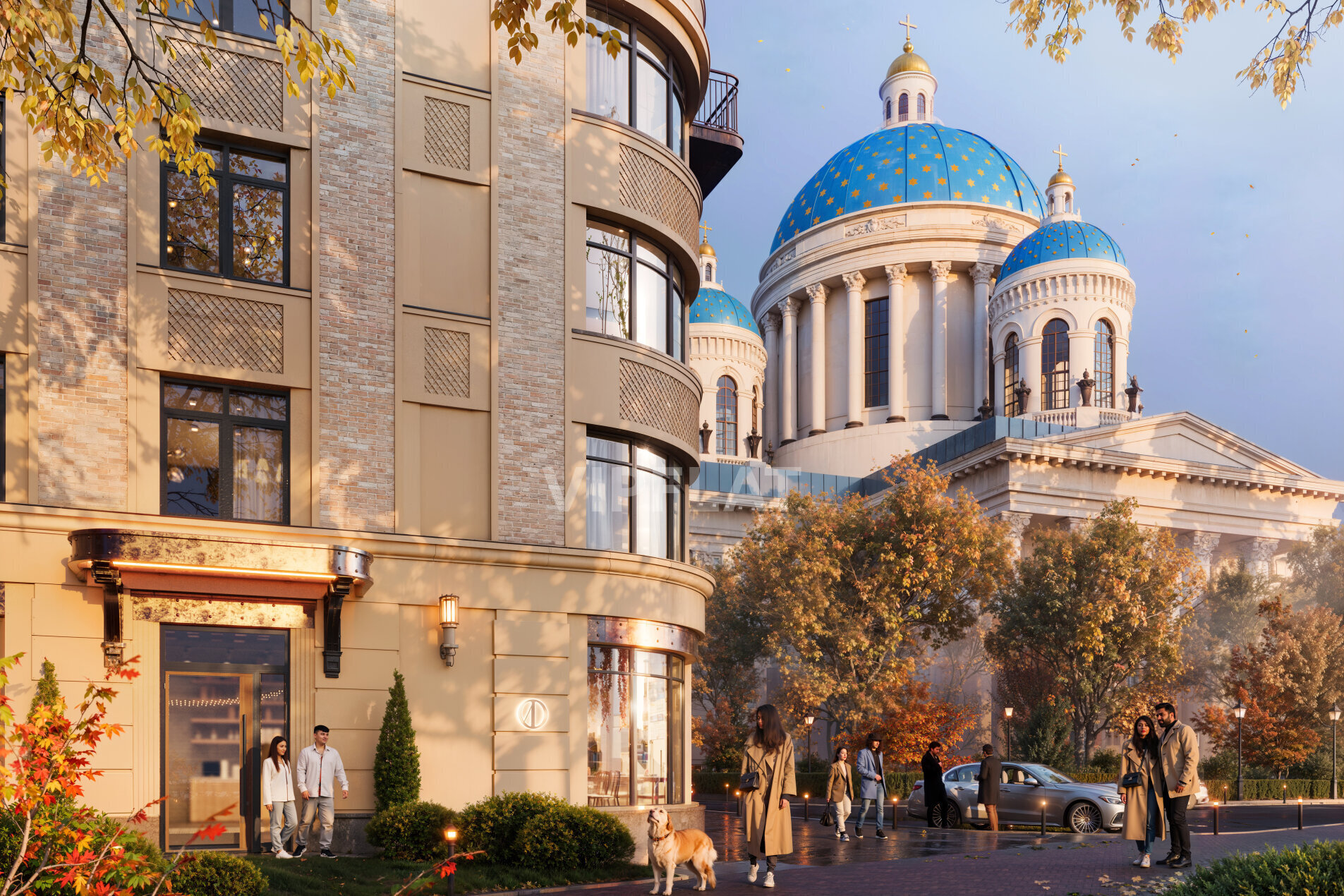 Украшением дома станет пешеходный променад от Собора до Фонтанки, вдоль магазинов, кофеен и ресторанов 1-го этажа — новое модное место для прогулок, встреч с друзьями и партнёрами, прямо у дома! Для прогулок и отдыха внутренний благоустроенный двор, закрытый коваными воротами — с зонами для отдыха, спортивной и детской площадками.